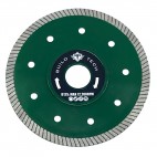 Ενισχυμένος δίσκος (Green Premium) διαμέτρου 125mm με ύψος πλακιδίου 7mm και πάχους κοπής 1,2mm που χρησιμοποιούνται για την κοπή δύσκολων πλακιδίων (gres porcellanato) με εκπληκτικά αποτελέσματα.